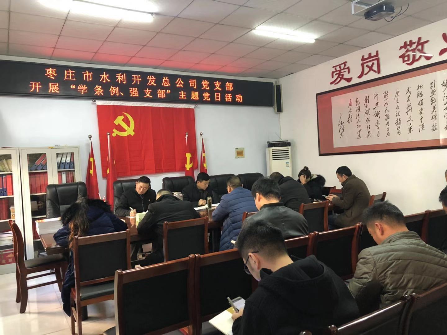 1228日下午,棗莊市水利開(kāi)發(fā)總公司開(kāi)展“學(xué)條例、強(qiáng)支部”主題黨日活動(dòng),集中學(xué)習(xí)新修訂的《中國(guó)共產(chǎn)黨支部工作條例(試行)》。